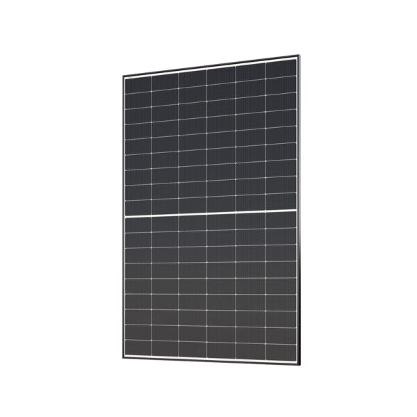 Ledvancen erittäin kustannustehokas 445Wp musta N-tyypin TOPCon teknologialla sekä lasi-lasi rakenteella oleva aurinkopaneeli pitkällä 25vuoden tuotetakuulla.